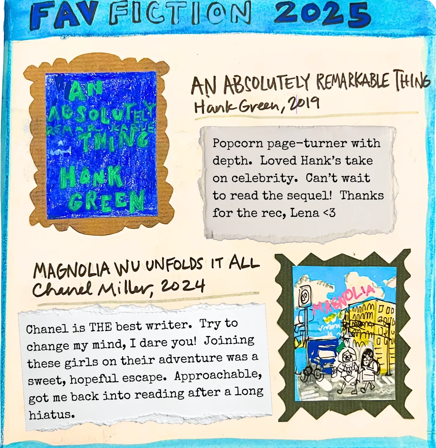 This year’s categories are fiction, graphic novels, bite-sized reads (under 15 min front to back), and nonfiction, since those seem to be the main things I read this year.